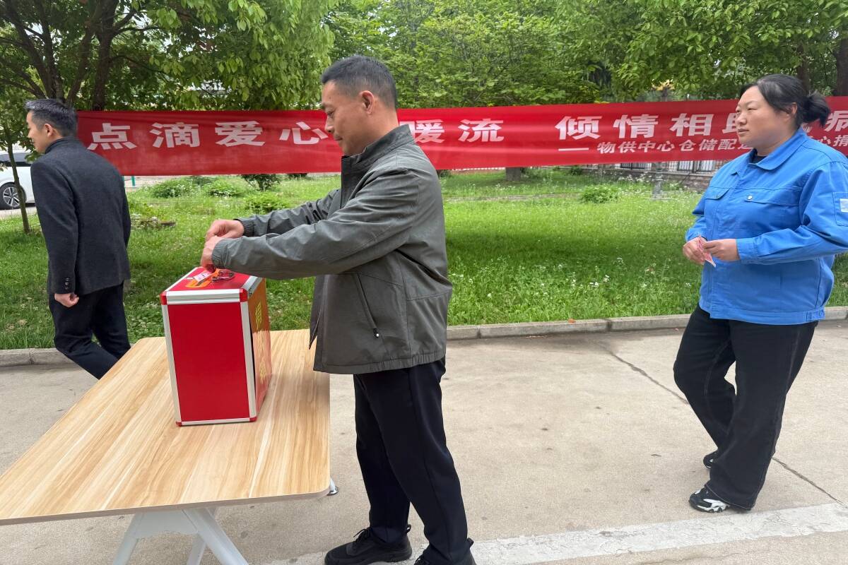 倡议一经发出,便得到了全体干部职工的热烈响应和积极参与,爱心的暖流在仓储配送中心的每一个角落涌动。从单位领导到普通职工,大家不分岗位、不分职级,纷纷奉献爱心、传递温暖。捐款现场,有的职工郑重地将善款投入捐款箱,眼神里满是牵挂与期盼,有的职工因休班原因无法到场,便通过线上转账的方式传递关怀。 “我们是并肩作战的同事,更是相亲相爱的一家人。现在他遇到了困难,我们理应站出来,尽自己的一份力,帮他挺过这段最难的日子。”一位一线职工的话语朴素而真挚,道出了全体干部职工的共同心声。
