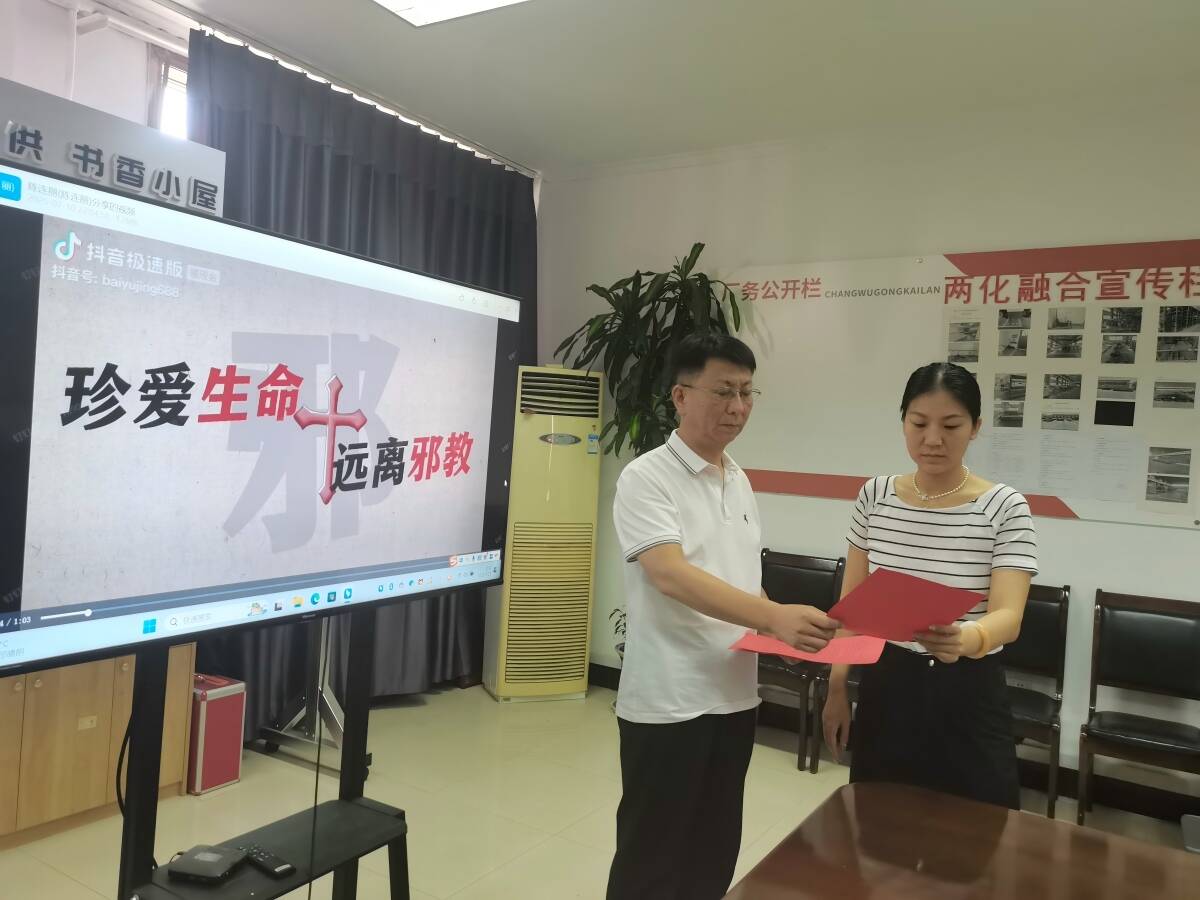 开展“铲除邪教危害 共享美好生活”主题党日活动,党支部书记带头领学反邪教专项法规,结合鲜活真实案例,深度拆解邪教蛊惑群众、破坏家庭秩序、扰乱基层治理的隐蔽套路与现实危害,清晰划清思想红线、行为底线。