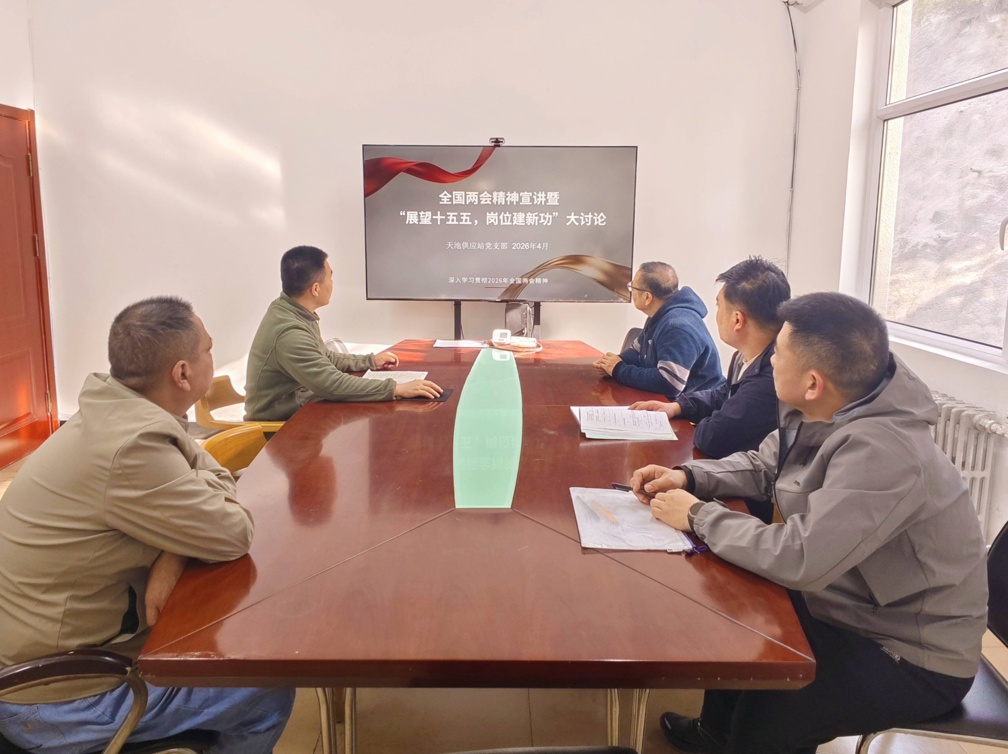 为深入学习贯彻2026年全国两会精神,锚定“十五五”发展蓝图,切实把思想和行动统一到党中央决策部署上来,天池供应站党支部组织开展全国两会精神宣讲暨“展望十五五,岗位建新功”大讨论活动,全体党员干部职工积极参加。